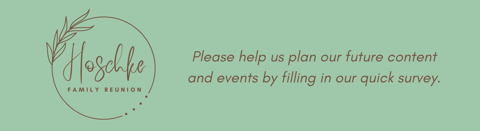 We would love some feedback on the content we have published in the last year and we are also looking at the possibility of holding our next family reunion event in the future and are keen to get some input from everyone! We’d appreciate if you could fill in the quick survey below to assist us with planning.