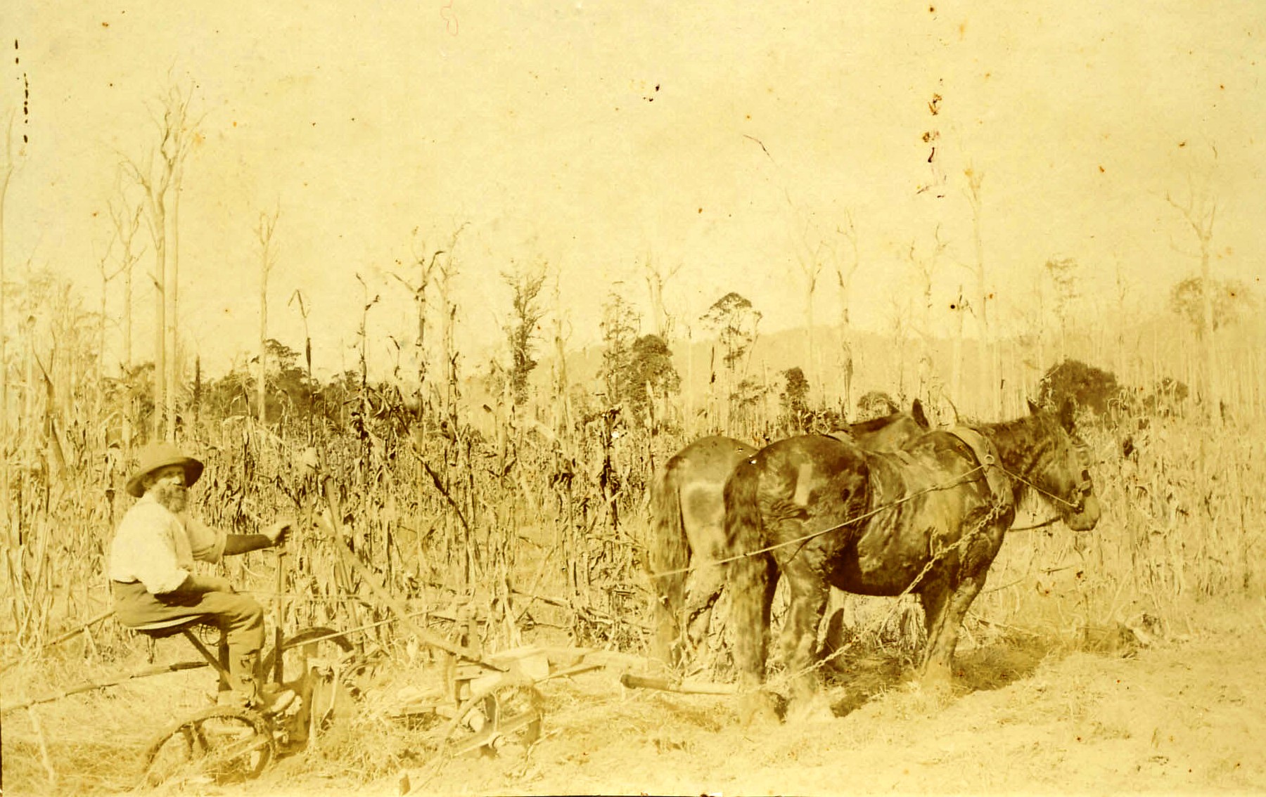 The other innovation was to assist in removing tree stumps. When the land was cleared there were both dead trees, as can be seen in photos of the time, and stumps in the ground. Amandus liked the idea of finding a better way of removing them. Orara farmers used this method in the 1960’s and 70’s (explosive being available before the days of terrorists) as it was cheaper than a bulldozer and left the soil less prone to erosion.