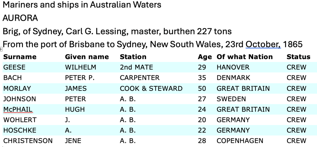He is recorded as a sailor on the ship Aurora arriving in Sydney in October 1865