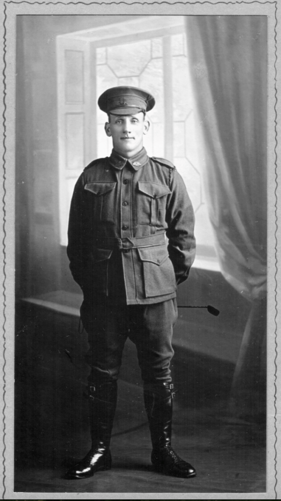Ted was 33 when he enlisted and was recorded as being 5’5 1/2″ tall, weighing 170 lbs with a fresh complexion, blue eyes and brown hair.