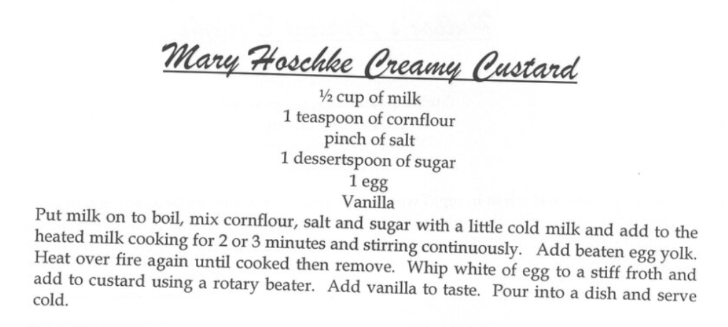 With dairy cows, maize and supplies from Grafton and the Bellinger Valley, we can imagine that treats such as custard were a special treat and filled the tummies of large families like the Hoschke’s.