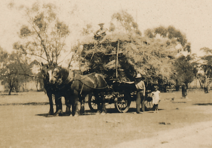 Our feature image this month has the caption “a load of hay” and what a huge load of hay is it, the poor horses! This is one of the recent photos we have scanned with thanks to Margaret Hoschke, if you recognise the image or the people in it, we would love to find out more!