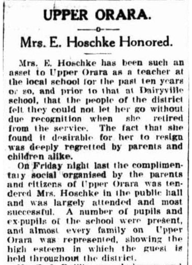 Next, he is mentioned working for a seed merchant in Coffs Harbour. Later he obtained some more land, at Orara, and used it to grow bananas. In 1940 Ted sold up and moved to Laurieton where he purchased a property and later Hoschke road would be named in his honour.